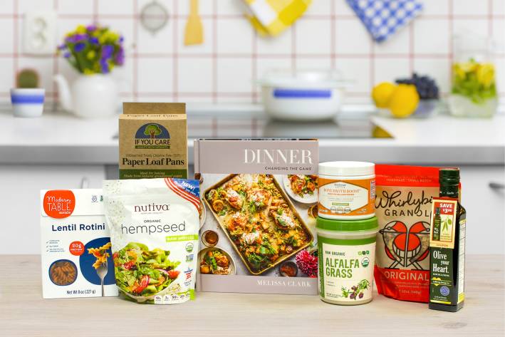 - Plan a feast for the ages with Modern Table Meals Lentil Rotini, If You Care Paper Loaf Pans, a copy of Dinner: Changing The Game by Melissa Clark, and a bottle of Olive Your Heart Garlic Flavor Olive Oil & Fish Oil
