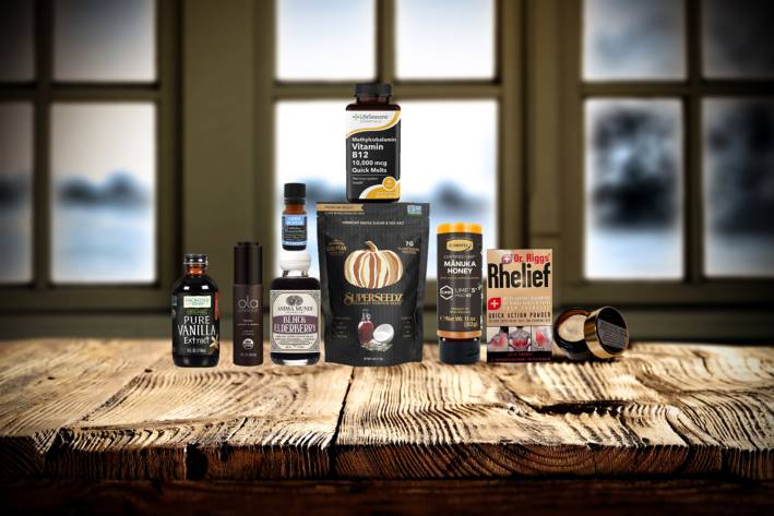 a selection of all-natural foods, body care products, and remedies