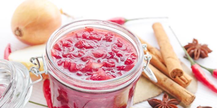 Add orange pulp, spices, and another 1⁄8 cup of water to cranberry mixture. Simmer for 20 minutes, uncovered, stirring often. Chill before serving.