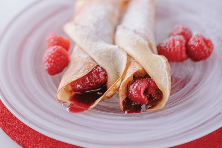 These crêpes may be served with some fresh fruit. For a family of four: Multiply the ingredients by six and serve as a dessert.