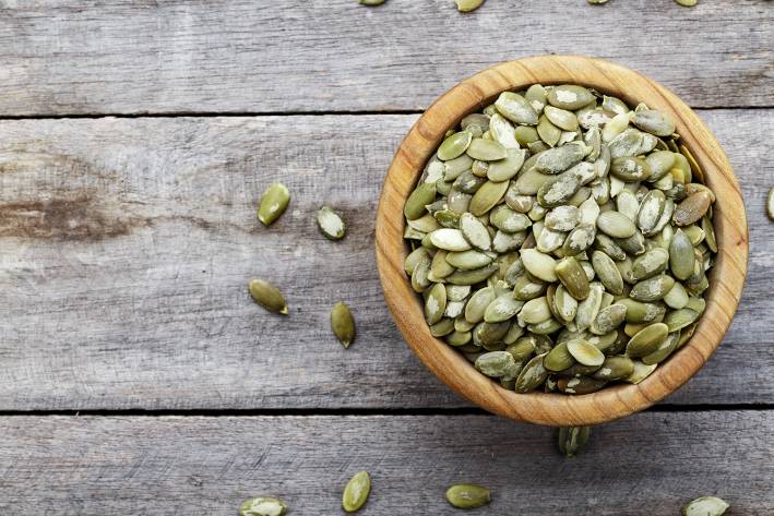 *Pumpkin seeds can be scooped whole from the pumpkin and then washed, dried, and pre-toasted for 30 minutes in a 300° oven; or hulled, prepackaged from the grocery store.