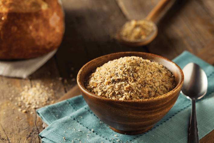 • *To make unseasoned bread crumbs, simply omit the nutritional yeast, garlic salt, onion powder, and oregano.
